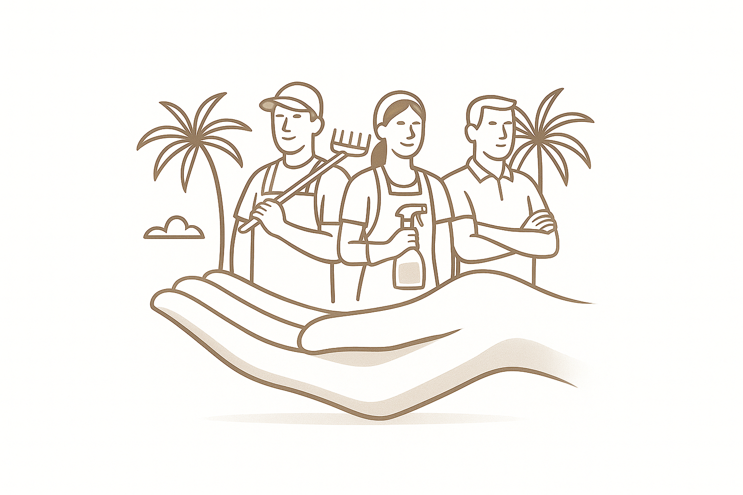 We are a small local team based in Ibiza. Over time, we’ve built strong relationships with the island’s most reliable professionals — gardeners, technicians, cleaners and security specialists — people we trust to care for every home as if it were their own.